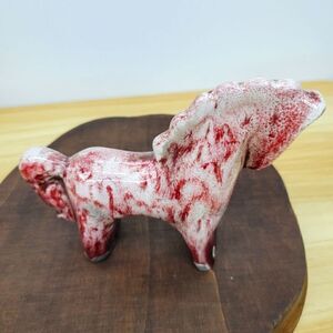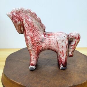 Beautiful horse colored in beautiful rich deep red tone with white speckles glaze on top, giving a stunning strawberry roan look. Unsigned