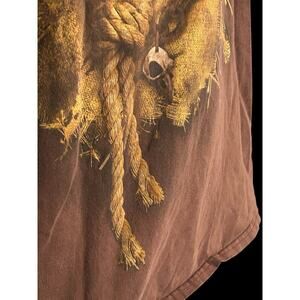 This Scarecrow Skull With Cowboy Hat And Flames Halloween T-Shirt in size L is a unique and eye-catching addition to any man's wardrobe.
