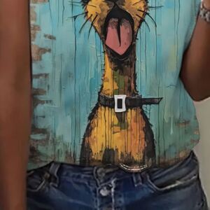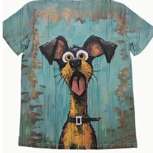 NEW! Funny Scared Dog Graphic Print Crew Neck T-shirt, Short Sleeve Casual Top For Spring & Summer, Women's Clothing. This shirt is so fun and will get you lots of laughs. A super trendy shirt for this summer! This is available in a Medium (6-8) or aLarge (10-12)