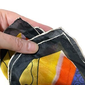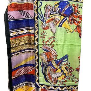 Scarf 100% Silk Mexican Fiesta Multi-Color Square Hand Rolled Hem 32” X 35”
