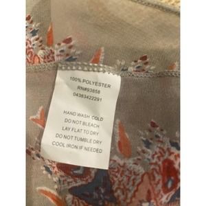 Scarf 28" 100% Polyester Gray Red Salmon Geometric.