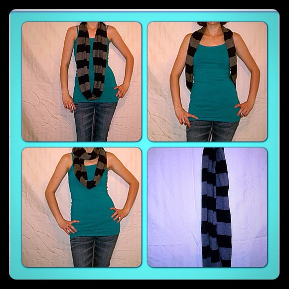 Super cute grey and black knit circle scarf.