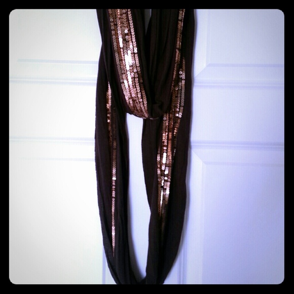 Brown and gold infinity scarf