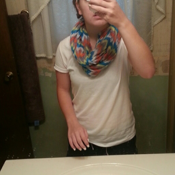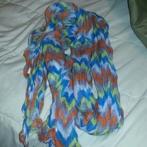 Blue, Green, Orange and white chevron scarf