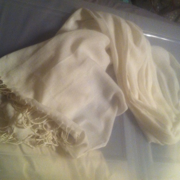 Off white long scarf with tassels