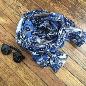 Beautiful blue and white pattern scarf, very large and full. Perfect for any season!