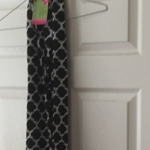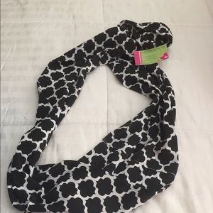 White Black cute print that will take you into Spring/Fall and Winter! Attached scarf in one. Would be great with monogram.