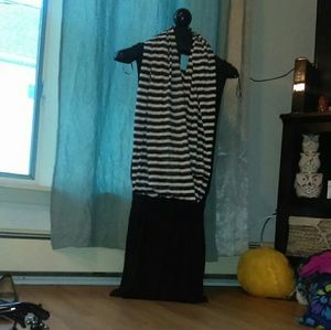 Black stripe is sheer and white is solid gives a nice texture figure 8 scarf