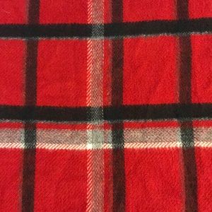 Red, black, gray, and white checkered cashmere scarf