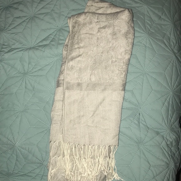 Beautiful classic scarf. Light gray/silver and white scarf. Like new.