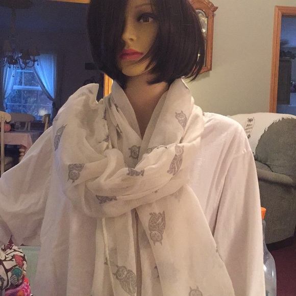 Creme with grey owls 🦉 76” long 35 in wide. There are some pulled threads.