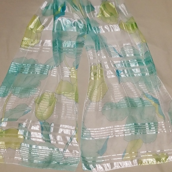 Sheer lightweight floral scarf in white with shades of green. Really elegant!