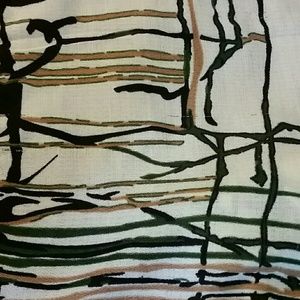 Light everyday scarf in cream, black, green and tan. A few areas with loose threads (see photo).