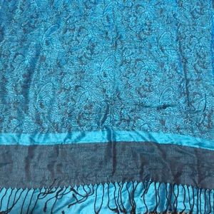 Teal and black patterned scarf. 70% pashmina 30% silk