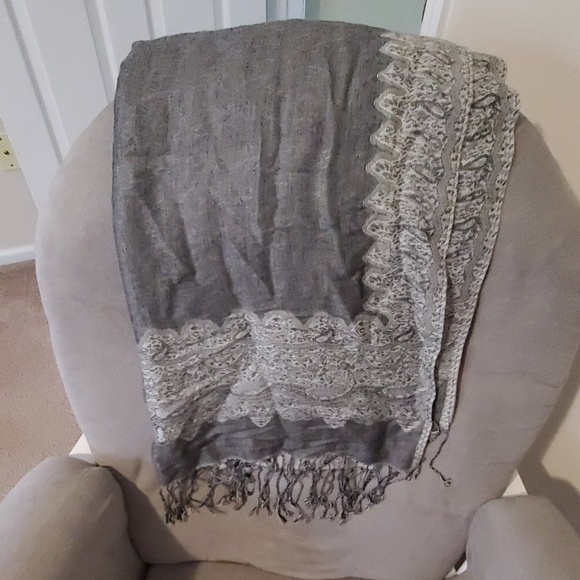 Soft scarf in gray tones. Was sold as a Pashmina, however it does not have any tags on it.