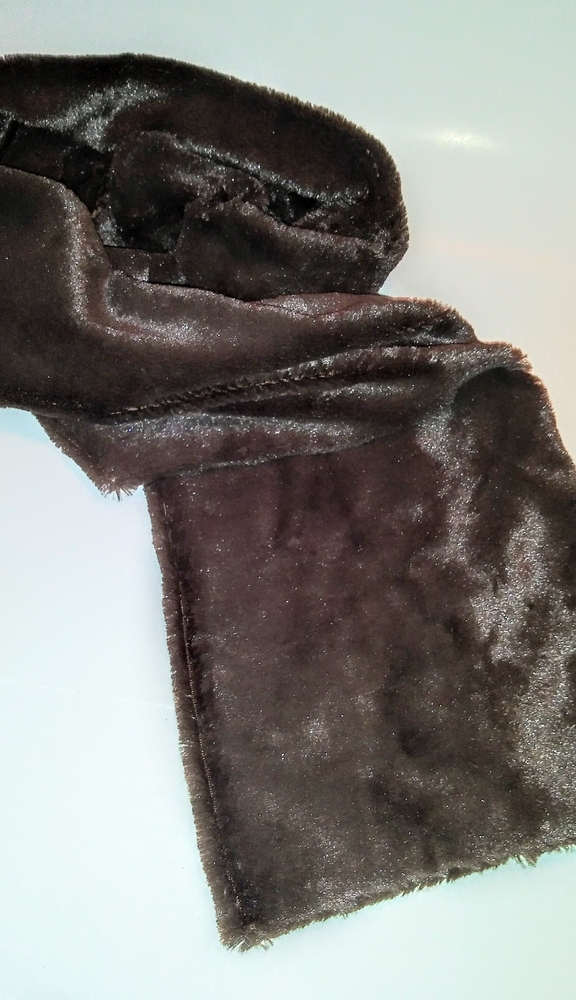 Couture faux fur scarf. Exclusively designed for the Lavished Collection. Measures 60" × 9 1/2". Hand sewn.