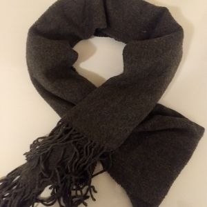 Gray, fringed winter scarf. Can be worn multiple ways. Only worn a few times. Great condition. Made in Italy. 💯 percent acrylic.