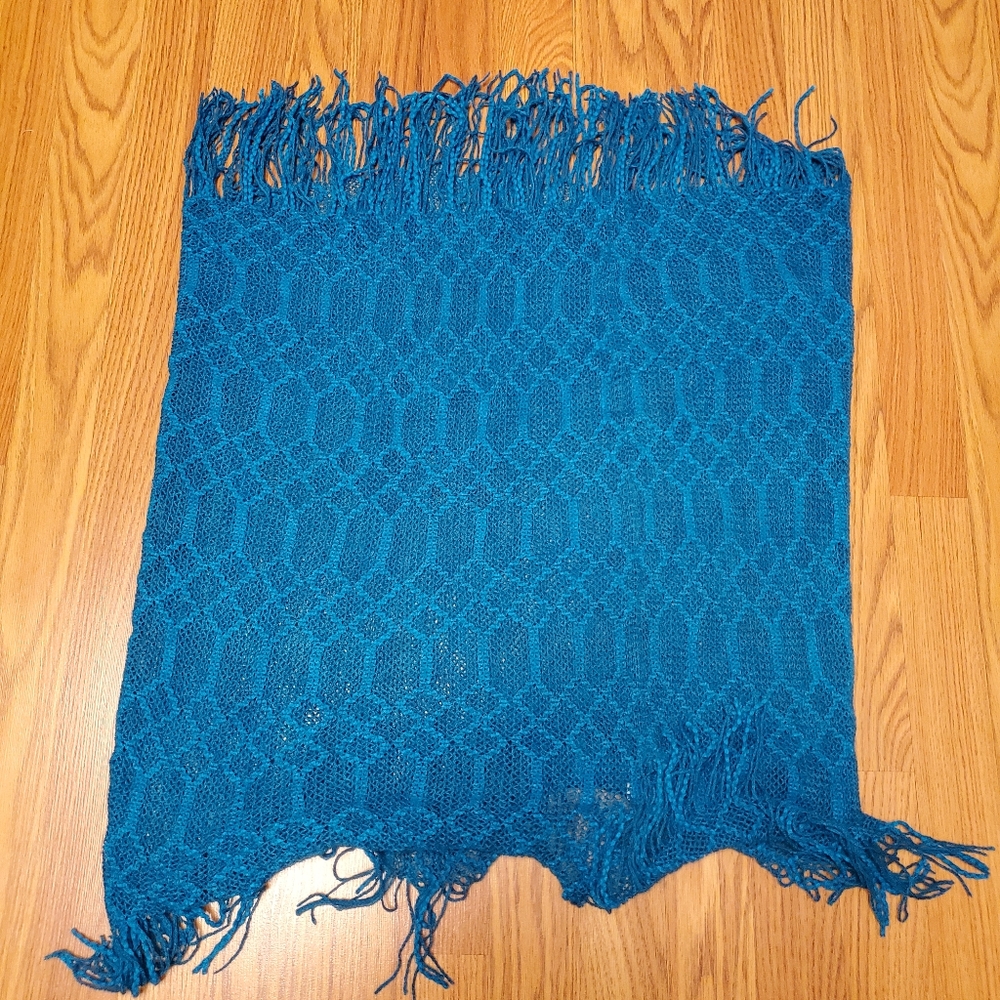 Infinity bright blue fringe scarf. 100% acrylic
