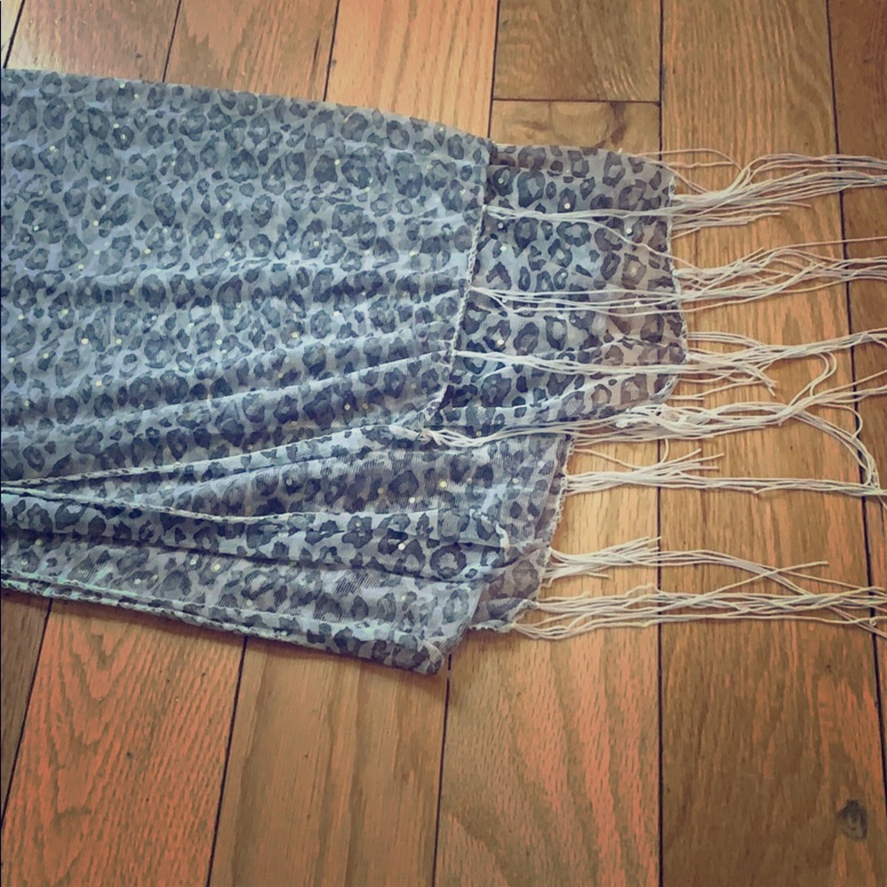 Gray leopard scarf with rainbow sequins very cute white strings at end of scarf this is thin material
