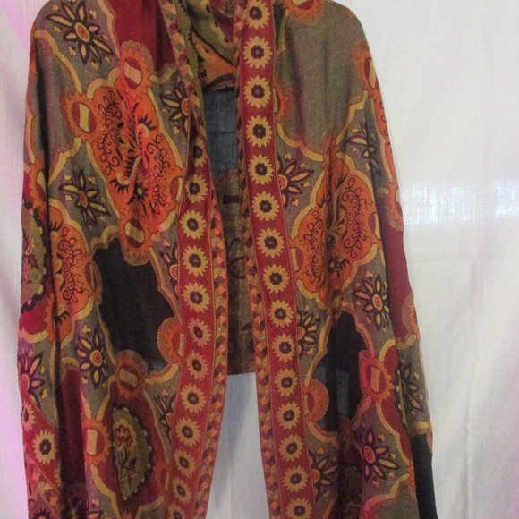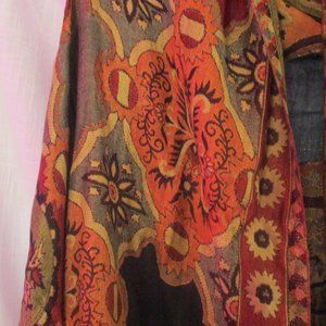 This beautiful scarf can be worn as a scarf or shawl. It is 100% Viscose.