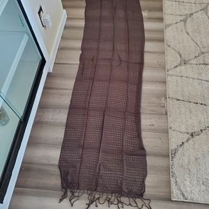 Brown lightweight scarf with fringe on the end. 19.5 in w x75 in L