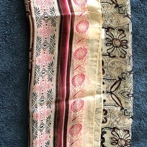 Pink and maroon scarf. Polyester. Long rectangular. Very pretty. Would look great worn as a neck scarf, headband, or belt. Never used. NWOT