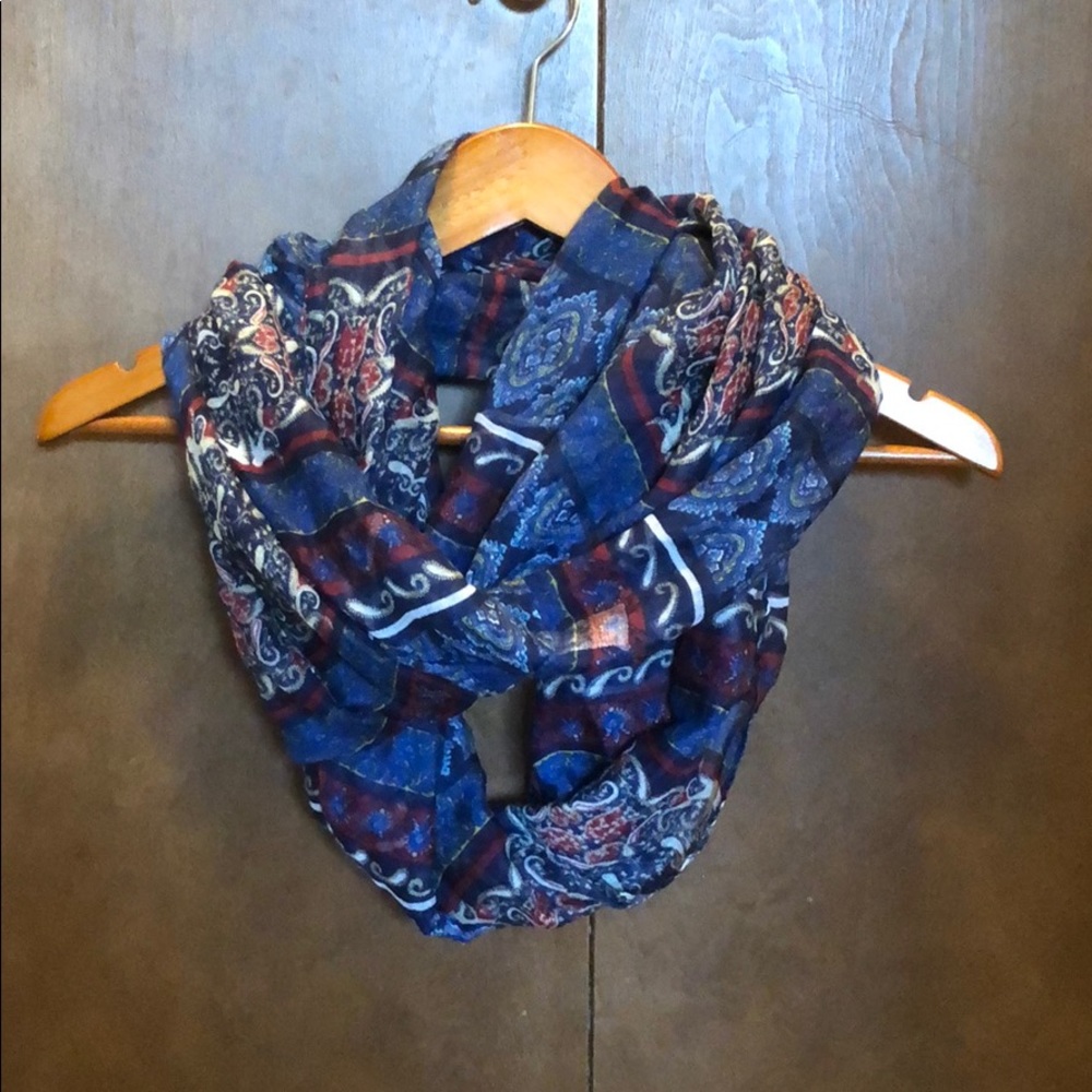 Boho paisley patterned infinity scarf for cool spring or fall days