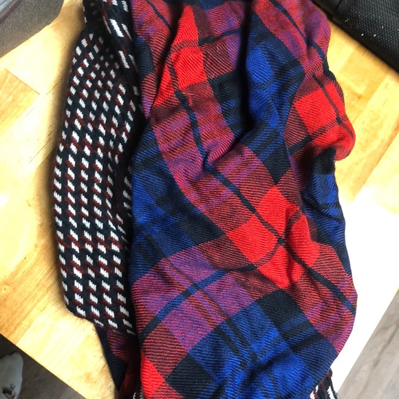 Infinity scarf! Does have a couple small snags, is red & blue plaid on one side and burgundy, white, and dark navy on the other