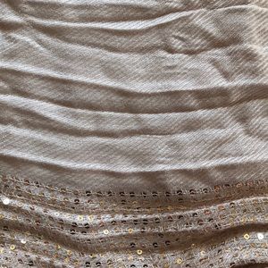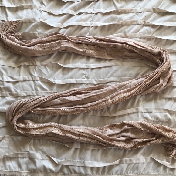 Tan scarf with lined with gold shimmers