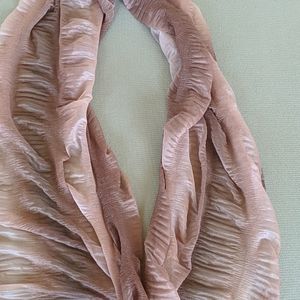Beautiful coffee and cream color scarf. Polyester Nylon materials. Like new no spots or snags. The scarf is 69" long and 20" wide. Comes from non smoking household.