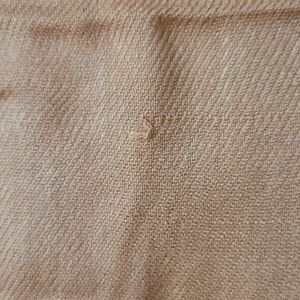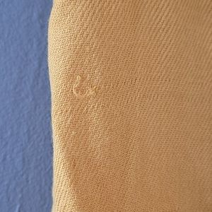 Long, orange fashion scarf. Super soft! Some snags. It's wrinkled from being folded, but that would come out with washing or steaming I think. Approximately 64in x 24in. I don't know the brand since it doesn't say on the tag and it was a gift!