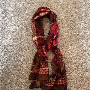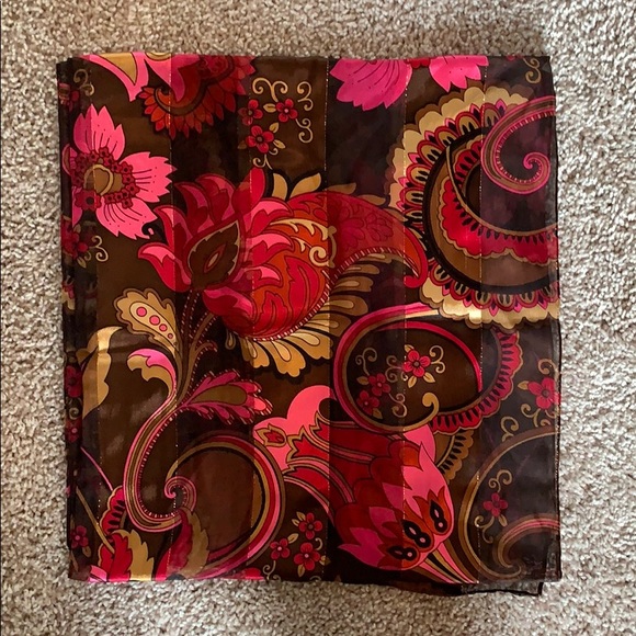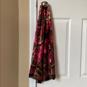 Brown, pink, with gold accent scarf. Never worn, excellent condition.