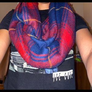 This is a plaid red and blue scarf that is perfect for cold weather! Please let me know if you’re interested.