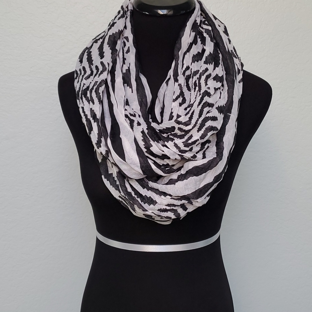 Black and white geometric infinity scarf. Has a few snags throughout (see example in pics)