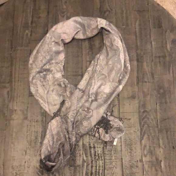 Long grey and light pink scarf with small tassels