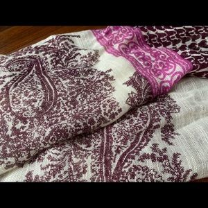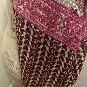 Fun boho scarf with pink and oriole patterned detail