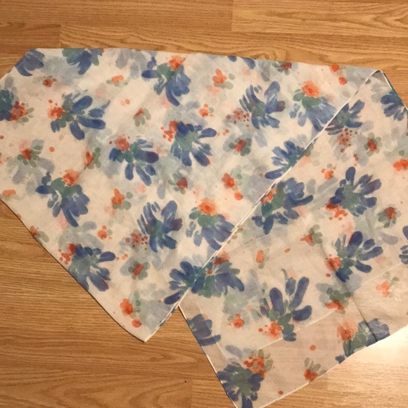 Beautiful cream with blues and moss green and peach colors. Nice accessory