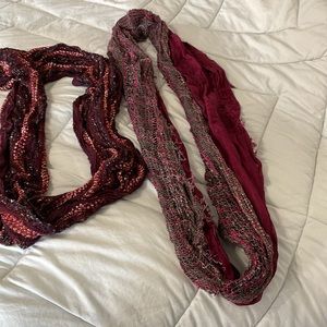 Set of three maroon scarfs . Two are infinity. One is express the other two Maurice’s