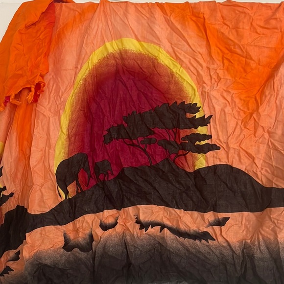 Scarf can also be used as a wrap 44x30yrds has elephant design African design red to orange gradient never worn