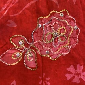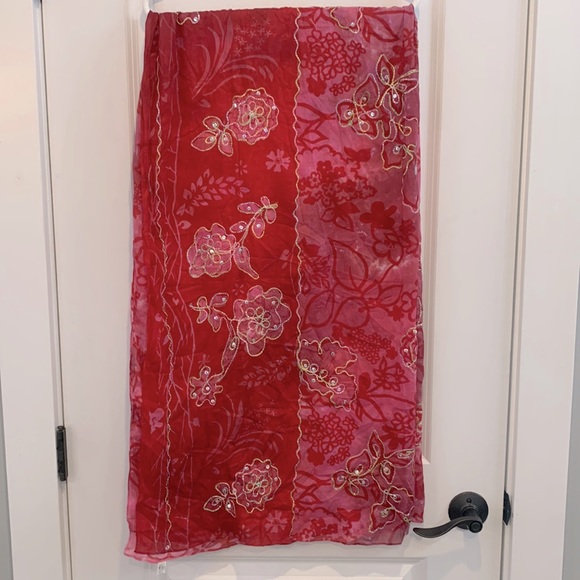 100% cotton scarf with stitched design and sequin embellishments.