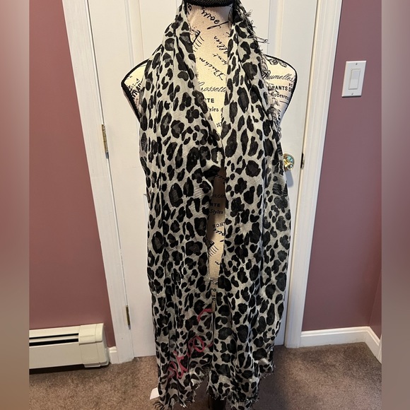 Black and white cheetah print scarf. One size. Brand: juicy couture. Can wear multiple ways. Good condition.