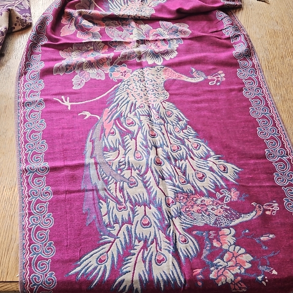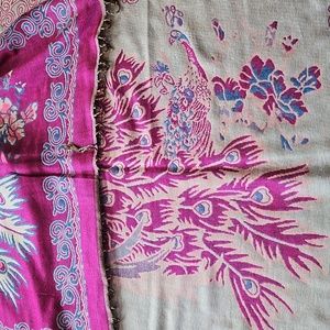 27 inches by 68 inches.no flaws new. pink, blue, cream. knit, soft.