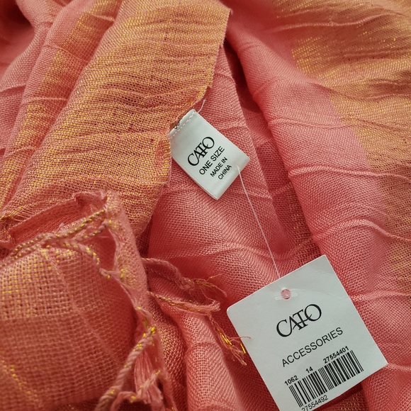 Scarf, Cato - beautiful Coral scarf with gold metallic thread, fringed on each end, lightweight not bulky. Never worn.