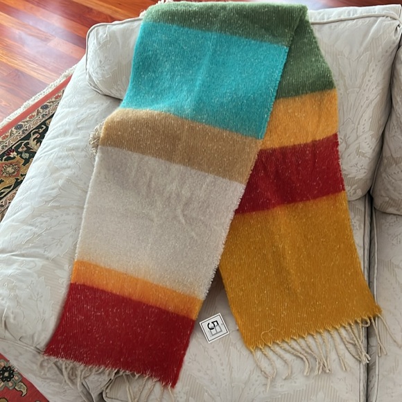 Soft and fluffy polyester scarf, washable, new and never worn, with tag.