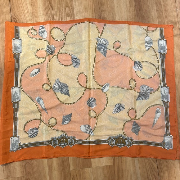 Nautical scarf, no tag but it doesn’t feel silk. 61.5”x24”