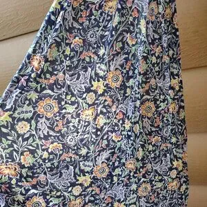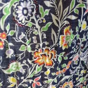 Super soft blue with an orange yellow green and white flower pattern.