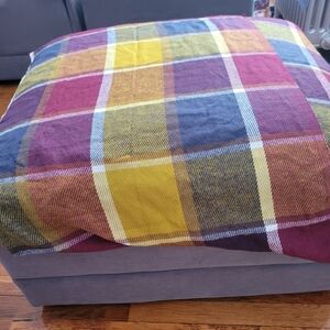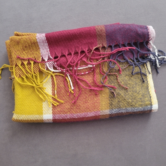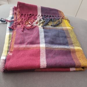 Multi colored, long, new without tags, soft scarf. Pink, red, blue, purple, white, plad scarf.