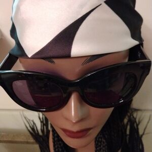 new black and white scarf poly silk with matching glasses sold together..
