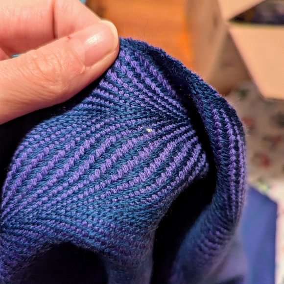 Hi Allie, I finally found you again. My suggestion is to tread a small gauge needle and thread with silk thread the darker color of blue. Tie a knot on the end and gently pull the blue yarn together, covering the empty space. I think I would add a second stitch to be sure it holds, and then slip stitch a few times to secure. I think both areas could be repaired this way. Let me know how it goes. Wish I could be of more help.