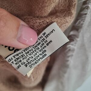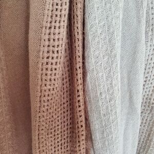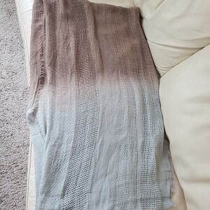 Gray and brown color infinity scarf. Rough edges. Soft neutral accessory.